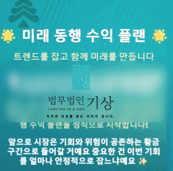 사기 조직은 리딩방을 통해 “미래동행수익플랜 3기 모집”, “엘리트 마스터 클래스 참여자 전용” 등의 문구로 홍보했습니다. “모든 회원이 동시에 매수·매도하는 통합 실행 매커니즘”, “정보 유출 시 자격 박탈” 등의 규칙을 내세워 전문 투자 그룹처럼 위장했습니다. 이후 운영자는 신협 명의의 ‘굿데이리테일 주식회사’ 계좌로 입금을 안내하며, “계좌 개설 후 바로 거래가 가능하다”고 설명했습니다. 실제 입금 후 사이트 내 ‘자금 현황’이 업데이트되어 금액과 수익률이 표시되었고, 피해자들은 “수익이 발생하는 것처럼 보였다”고 진술했습니다.
